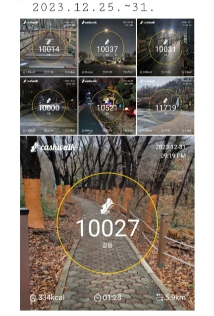 | 1주간 운동, 식단 기록 (2023.12.18.~24.)(만보 캐시워크로 공짜 치킨 먹었어요.) (7) | 2024.01.01 |